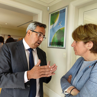 Après une prise de parole et des échanges avec nos compatriotes une réception était organisée à l'invitation de l'ambassadeur, Pierre-André Imbert, et du consul général, Marc Juillard. J'ai pu en outre avoir un entretien privé avec le ministre puis échanger avec nos compatriotes venus nombreux et notamment avec Marie Gittard, présidente de la section 🇦🇺 de la société des membres de la Légion d'honneur, François Romanet, président de l'Alliance française de Sydney et Philippe Vincent, président du chapitre NSW de la chambre de commerce franco-australienne 🇫🇷🇦🇺.