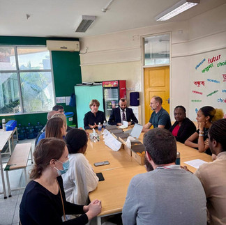La fin de journée a été dédiée à un échange avec le directeur de l’école française, Karim Talaouanou, ainsi qu’avec des membres du Comité de gestion, avant un dîner de travail et la visite de l’établissement le lendemain. Nos échanges ont porté sur les perspectives d’agrandissement, la montée des effectifs, la sérénité retrouvée au sein de l’équipe et des familles grâce au travail de coordination et d’accompagnement du directeur d’école au parcours très expérimenté au sein du réseau de l’EFE. Les parents du comité, engagés et très volontaires, forment une équipe dynamique qui comprend les enjeux et soutient les décisions du directeur et son équipe. Nous avons décidé de poursuivre nos échanges avec les membres de ce sympathique comité de gestion.