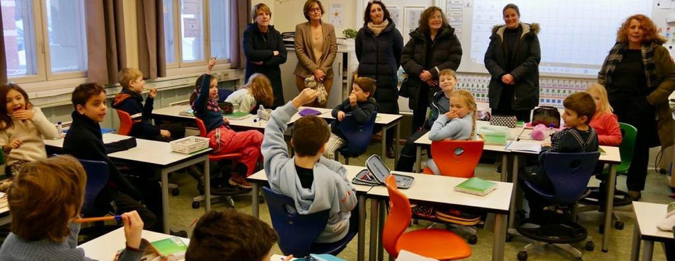 Jeudi matin, après un petit-déjeuner de cadrage avec Mme l’ambassadrice, direction le Lycée français René Cassin d’Oslo. L’établissement, conventionné avec l’AEFE, accueille presque 700 élèves de la maternelle à la terminale d’une quarantaine de nationalités différentes.