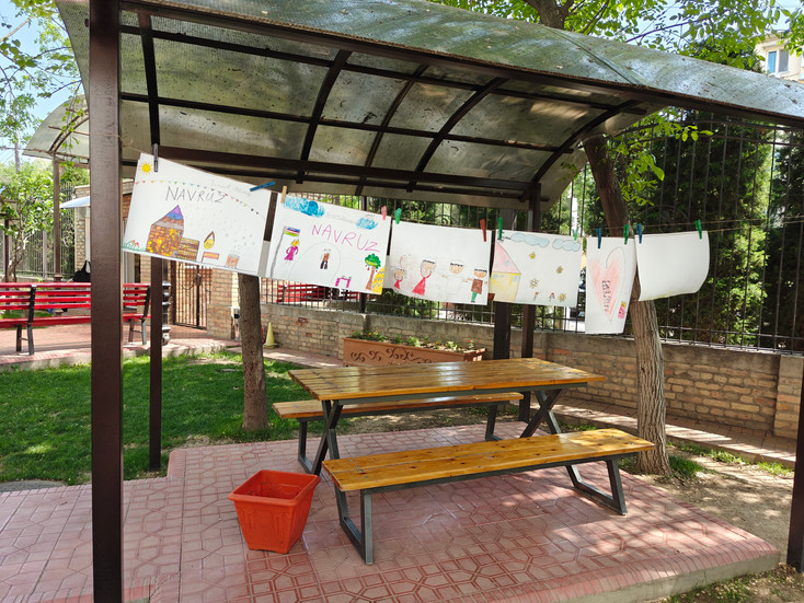Départ de journée au Lycée français de Tachkent en compagnie de Denis Duclos, COCAC, où j'ai été accueillie par le chef d'établissement Sébastien Pinède, et par Pierre Dirrig et Nicolas Laden, membres du comité de gestion. Cet établissement accueille actuellement 232 élèves (80% de nationalité ouzbèke) dont 127 en classes homologuées de la PS au CM2 et les autres en classes réglementées CNED de la 6e à la terminale.