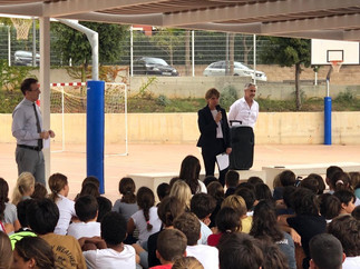 Unis pour notre école. Hommage au Lycée Français International de Palma hier après-midi à Dominique Bernard, Samuel Paty et toutes les victimes des attentats commis contre l’École.